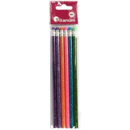 Ołówki brokatowe z gumką HB 6szt - Titanum