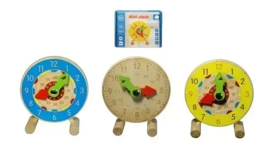 Efektowny, drewniany zegar edukacyjny umożliwiający przyswojenie wiedzy o cyfrach i godzinach. Stanowi idealne narzędzie do nauki pojmowania działania zegara.