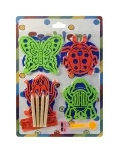 W skład zabawkowej serii szablonów do rysowania wchodzi osiem różnorodnych tablic szablonowych, linijka, temperówka oraz zróżnicowany zestaw kolorowych kredek. Rysunki na szablonach przedstawiają rozmaite motywy, takie jak na przykład zwierzęta czy kwiaty. Szablony przeznaczone są dla dzieci powyżej 3. roku życia. Zabawka pakowana jest w praktyczną, kartonową podstawkę, którą przykrywa przezroczysty klosz. Proszę zwrócić uwagę, że podane wymiary odnoszą się do rozmiarów opakowania produktu.