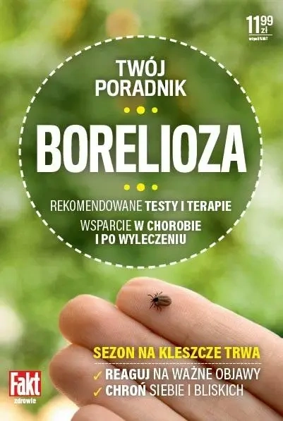 Boreliozę nazywa się coraz częściej cichą epidemią XXI wieku, a jej sprawcę, kleszcza, najgroźniejszym zwierzęciem w Europie. Przenosi on bowiem jedną z najbardziej podstępnych i uciążliwych chorób, boreliozę. Trudno ją rozpoznać, leczenie jest obciążające dla organizmu, a przykre objawy mogą dawać o sobie znać jeszcze długo po zakończeniu terapii. Kleszcz to wyjątkowo podstępny pajęczak, a jego atak łatwo przeoczyć - może przypominać ziarenko piasku, a miejsce po wkłuciu nie swędzi, nie boli i raczej nie robi się czerwone, jak w przypadku ugryzienia komara czy meszki. Jeśli ten moment nam umknie lub go zbagatelizujemy, a kleszcz wpuści do naszego organizmu groźne krętki Borrelia, to problemy zdrowotne mogą ciągnąć się latami. Dlatego trzeba wiedzieć, jak się chronić i jak reagować, gdy dojdzie do spotkania z kleszczem. W tym pomóc ma ten poradnik.