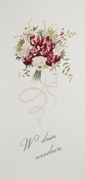 Karnet urodzinowy ręcznie malowany DL-U08 Bukiet czerwony MAK