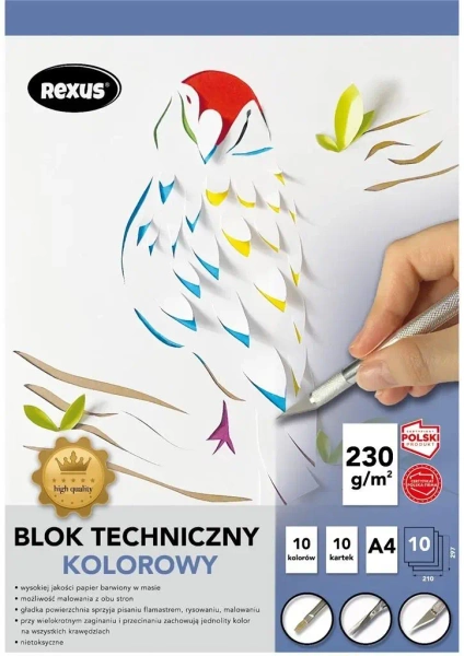 Chcesz tworzyć z pasją? Wybierz Blok techniczny premium w wersji A4. Zestaw ten oferuje 10 arkuszy o różnych barwach, co dodaje ekscytacji twoim twórczym działaniom. Papier o gramaturze aż 230g/m2 zapewnia stabilność i trwałość każdej pracy. Blok ten będzie idealny, bez względu na wybraną technikę - czy to rysunek ołówkiem, malowanie kredkami, czy praca z pisakami.