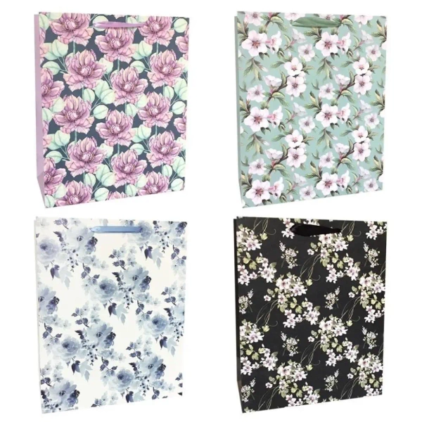 W naszej ofercie znajdziecie bardzo rozmaite wzory torby prezentowej o wymiarach 26 x 32 cm, w kolorach takich jak jaśmin czy czarny bez. Każda torba jest unikalna, a jej wzór jest dobierany losowo. Pamiętaj, że cena dotyczy jednej sztuki.