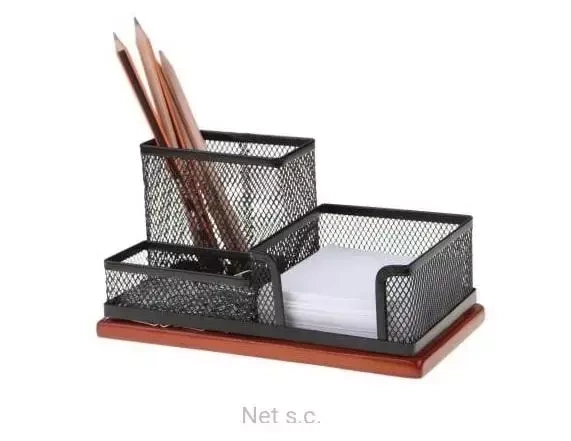 Część górna przybornika utworzona jest z siatki metalowej, pokrytej czarnym lakierem, co daje efektowny i stylowy wygląd, idealny do każdego wnętrza biura czy domowego gabinetu.