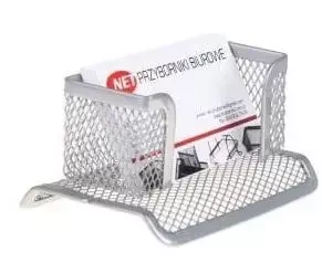 Prezentujemy Państwu elegancki pojemnik na wizytówki, wykonany z delikatnej metalowej siateczki w srebrnym kolorze. Jest to doskonałe rozwiązanie dla osób ceniących sobie estetykę i praktyczność podczas wykonywania zawodowych obowiązków.