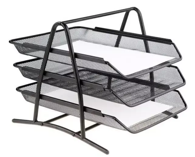 Elegancka trzypoziomowa półka na dokumenty A4 z wysuwanymi tackami