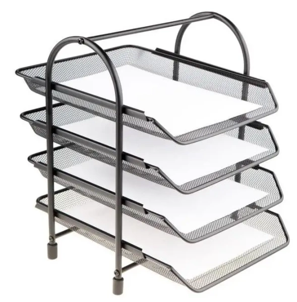Elegancka trzypoziomowa półka na dokumenty A4 z wysuwanymi tackami