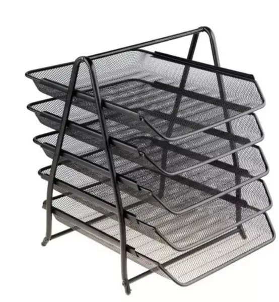 Elegancka trzypoziomowa półka na dokumenty A4 z wysuwanymi tackami