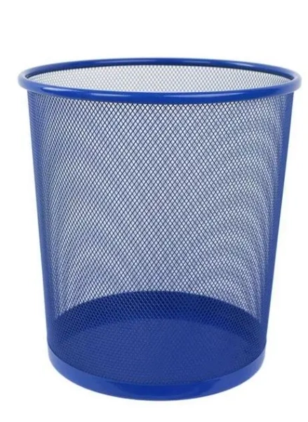 Innowacyjny oraz elegancki kosz okrągły mały niebieski, idealny zarówno do biura, jak i do domu. Wykonany został z delikatnej siatki metalowej, co nadaje mu wyjątkowy design.