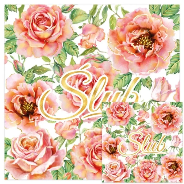 Kwadratowy Karnet Ślubny z Herbacianymi Różami Henry