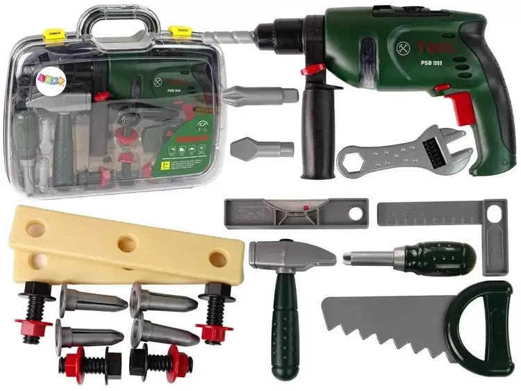Niniejszym prezentujemy wyjątkowy zestaw narzędzi dla najmłodszych, umieszczony w przezroczystej walizce. Ten produkt to doskonała okazja dla dzieci do przeżywania radości z zabawy polegającej na naśladowaniu dorosłych majstrujących w domu. Dzięki temu Twoje dziecko poczuje się ważne i odpowiedzialne.