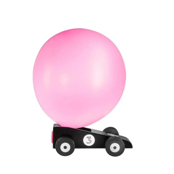 Kiedy balonik zostanie napompowany, wystarczy puścić powietrze, a samochodzik rozpocznie jazdę dzięki sile odrzutu wydobywającego się powietrza. To doskonały sposób na naukę podstaw fizyki, jednocześnie bawiąc się bez szkody dla środowiska.
