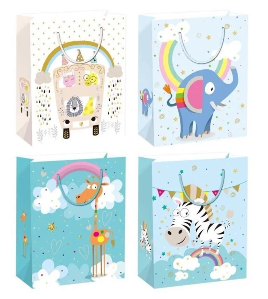 Prezentowana torebka upominkowa charakteryzuje się wymiarami: wysokość wynosi 40 cm, długość to 30 cm, natomiast szerokość to 12 cm.