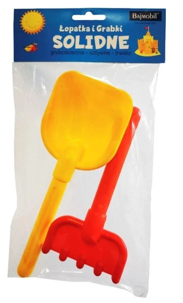 Prezentowany zestaw to dwa elementy praktyczne podczas każdej zabawy w piasku: świetnie wykonana łopatka oraz funkcjonalne grabki. Są to akcesoria charakteryzujące się wysoką wytrzymałością, sztywnością i dużą grubością ścianek.