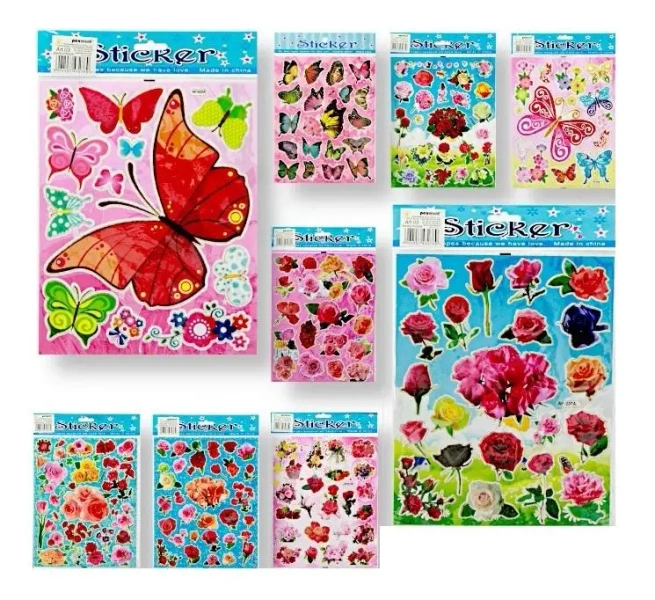 Naklejki laserowe z obrazkami kwiatów i motyli o wielkości 20x25mm