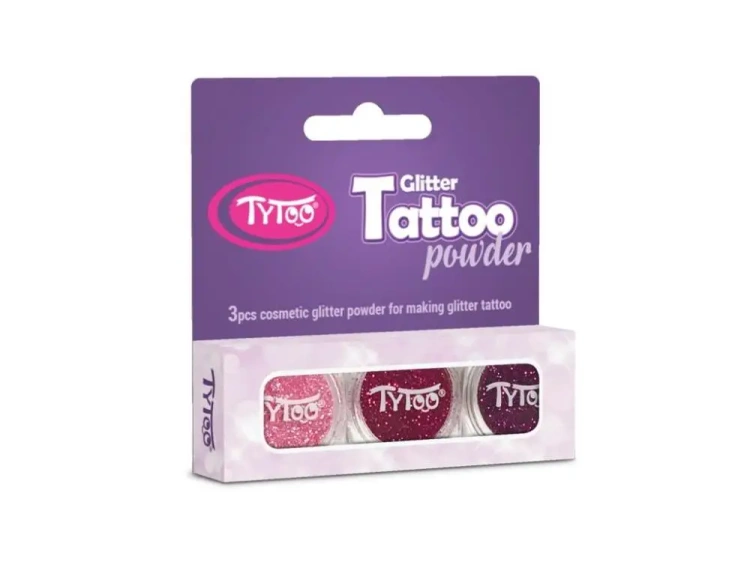 Odkryj magiczny świat samodzielnie wykonanych tatuaży z Tytoo - zestawem brokatowych pyłków! Zostań kreatorem niezwykłych, błyszczących i pełnych tematycznych motywów tatuaży. W ofercie znajduje się zestaw składający się z trzech opakowań brokatu w przepięknych, intensywnych kolorach: różowego, czerwonego i fioletowego.EAN: 5999094500815