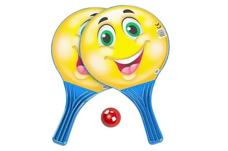 Zestaw z radosnymi rakietkami składa się z dwóch elementów do gry oraz jednej małej piłeczki. Jest bezpieczny i odpowiedni dla dzieci, które skończyły trzy lata.
