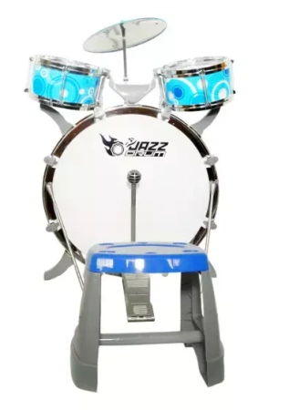 Zestaw do zabawy obejmuje trzy kolorowe bębny, które łatwo można zamienić w perkusję. Złożenie ich jest prostym procesem, nie wymagającym dużo czasu i wysiłku. W komplecie znajdują się również metalowe talerze, pałeczki do gry, krzesełko na którym można siedzieć podczas grania i pedał nożny. Cała ta wielofunkcyjna perkusja jest starannie zapakowana w kartonowe pudełko wyposażone w uchwyt.Kolorystyka