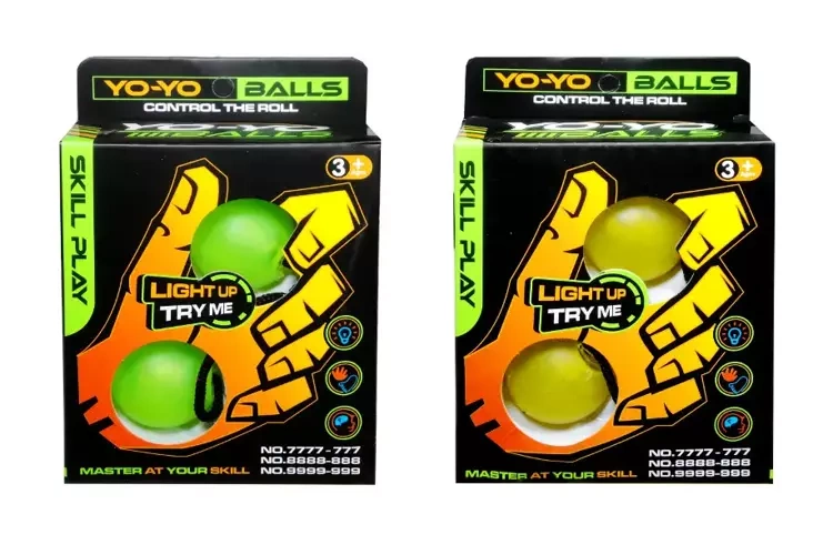 Pojedyncze kolorowe kule dla dzieci, które łączy się ze sobą za pomocą sznureczków, oferując zabawę polegającą na wzajemnym odbijaniu. Zabawka posiada funkcję świecenia przy uderzeniu, co dodatkowo podnosi atrakcyjność produktu. Nadaje ona światło dzięki wbudowanemu oświetleniu led.Zabawka zasilana jest za pomocą baterii typu AG3, które są już zawarte w skład zestawu.