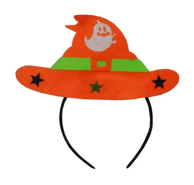 Czarna opaska dla dzieci halloween ozdobiona filcową dekoracją w kształcie halloweenowej czapki/kapelusza.