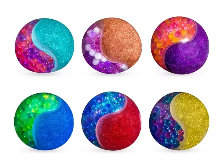 Bardzo oryginalna, dwustronna piłka gniotek dla osób poszukujących nietypowych rozwiązań na stres. Ten unikalny produkt to miękka, gumowa kula, która jest wypełniona atrakcyjną, kolorową masą. Przy ściskaniu masa ta zmienia swoje położenie, co prowadzi do przekształcenia kształtu kuli. Mieści w sobie dwa różne wypełnienia - błyszczący brokat oraz barwne kulki. To nie tylko fantastyczna zabawka dla dzieci, lecz także skuteczny środka przeciw stresowy dla rodziców. Produkt dedykowany dla dzieci w wieku od 8. lat, dostępny w sześciu wariantach kolorystycznych.