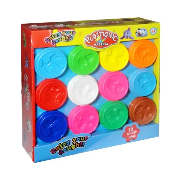 Produkt obejmuje 12 pojemniczków z plasteliną w różnorodnych odcieniach. Takie pudełeczka skrywają nie tylko kolorowe kawałki masy plastycznej, ale dają możliwość trenowania sprawności małych rączek u dzieci. Dodatkowo, dzieci mają okazję rozbudować swoją wyobraźnię oraz kreatywność.Po zakończonym modelowaniu, konieczne jest odłożenie plasteliny do pojemników, żeby uchronić ją przed wysuszeniem i rozmieszczeniem kruszonek.