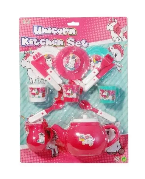 Prezentujemy wyjątkowy zestaw naczyń dla dzieci, wykonanych z tworzywa sztucznego. W skład zestawu wchodzą: talerzyki, kubeczki, czajniczek, mlecznik oraz sztućce. Całość ozdobiona została uroczymi motywami jednorożca, które z pewnością przypadną do gustu wszystkim małym miłośnikom tych fantastycznych stworzeń. Produkt zapakowany został w estetyczne opakowanie, składające się z kartonowej podstawki oraz przezroczystego klosza. Wymiary podane w opisie odnoszą się właśnie do opakowania, które idealnie nadaje się na prezent. Stworzony z myślą o dzieciach, ten zestaw naczyń z jednorożcem sprawi, że każdy posiłek stanie się magicznym doświadczeniem.EAN: 5902496179053
