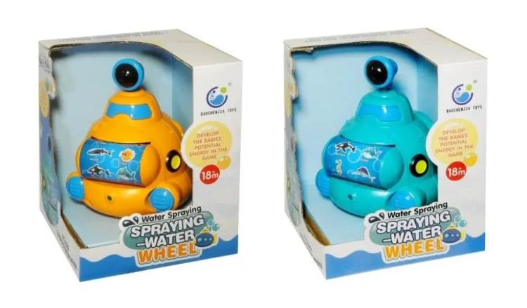 Naucz swoje dziecko miłości do wody, dzięki tej interaktywnej zabawce do kąpieli, która ma kształt łodzi podwodnej. Wypełnienie tej łodzi wodą jest proste, a następnie, gdy na pływającej pompce jest siła, zabawka zaczyna tryskać wodą. Przez to pasujące kółko zaczyna się obracać.Na obracającym się kółku zauważysz różne postacie zwierząt wodnych, które są na pewno ulubieńcami Twojego malucha.