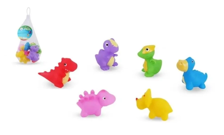Zaoferuj swojemu dziecku więcej radości podczas kąpieli dzięki tym uroczym zabawkowym dinozaurom, które posiadają funkcję piszczenia. Zestaw zawiera sześć sztuk dinozaurów, które z pewnością dostarczą dzieciom wiele godzin zabawy.Zabawki są odpowiednie dla dzieci od 18. miesiąca życia.