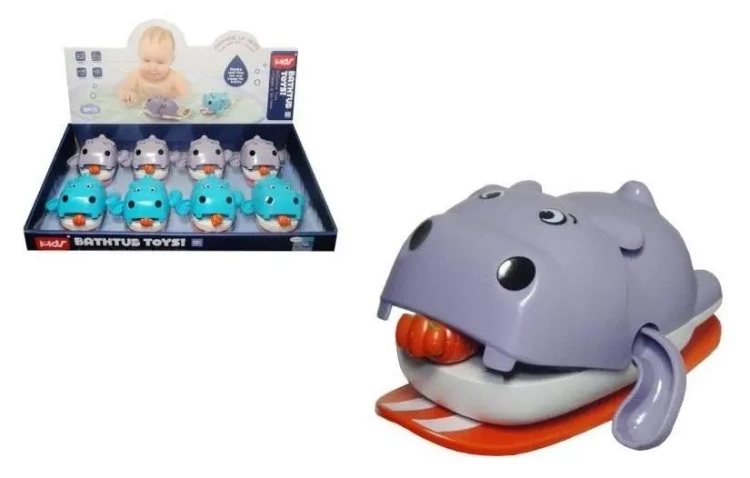 Zwierzątko hipopotam pływający na desce. Z jego pyska wystaje marchewka, którą należy pociągnąć wtedy zwierzątko zaczyna machać rękami, co będzie sprawiać, że będzie poruszać się w wodzie. Produkt dostępny w kilku wersjach kolorystycznych, wybierany losowo. Cena dotyczy jednej sztuki. Zabawka przeznaczona dla dzieci od 3 lat.