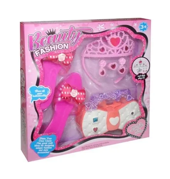 Śliczne buciki, takie jak z twojej ulubionej bajki, oto to, co mamy w zestawie. Kolejne elementy to tiara, kolczyki, pierścionek... i oczywiście torebka, która jest tak pojemna, że zmieści więcej skarbów, niż mogłoby się wydawać.Produkt jest zapakowany w przemyślany sposób - w kartonowe pudełko z przezroczystym okienkiem.