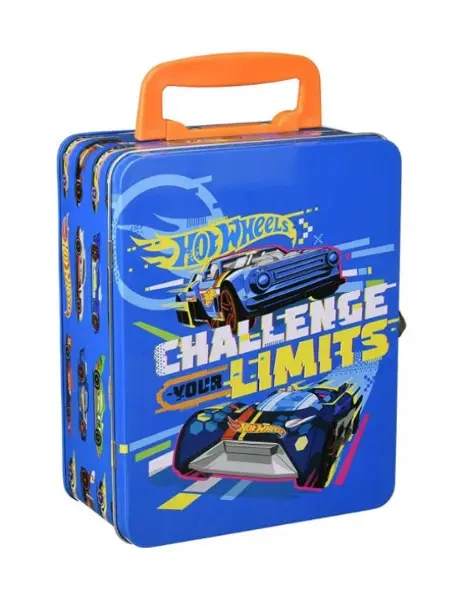 Reputowana firma Klein, znana z produkcji wysokiej jakości zabawek, nawiązała współpracę z marką Hot Wheels, by sprostać oczekiwaniom jej fanów. Efektem tego jest metalowa walizka na auta, która umożliwia schludne przechowywanie, bezpieczny transport i uporządkowanie nawet 18 modeli samochodzików. Zarówno wnętrze, jak i zewnętrzna powłoka walizki są wykonane z metalu. Została ozdobiona grafiką prezentującą popularne modele aut Hot Wheels oraz logo serii. Dodatkowo na jej wierzchu umieszczono praktyczną, pomarańczową rączkę - kolorystycznie nawiązującą do loga marki. Kwestia bezpieczeństwa jest ważna - aby zapobiec przypadkowemu otwarciu się walizki.EAN: 4009847028839