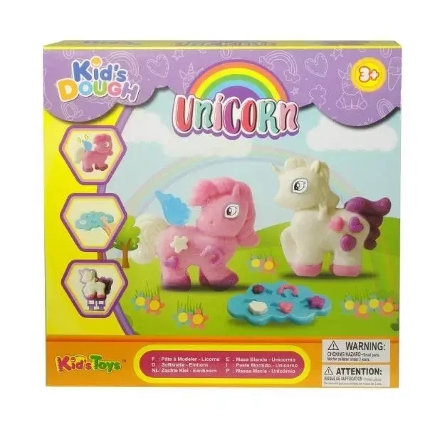 Prezentujemy pakiet trzech kolorowych mas plastycznych, wraz z formami w kształcie jednorożców i innymi niezbędnymi elementami, które umożliwiają stworzenie własnych małych jednorożców, takimi jak skrzydełka. Zestaw zawiera również praktyczne nożyczki i nóż, a także oczy do naszych małych stworzeń. Całość zapakowana jest w piękne kartonowe pudełko, dzięki czemu doskonale nadaje się do prezentu. Zabawka przeznaczona dla dzieci powyżej 3 roku życia. Prosimy zauważyć, że podane wymiary to wymiary samego opakowania.