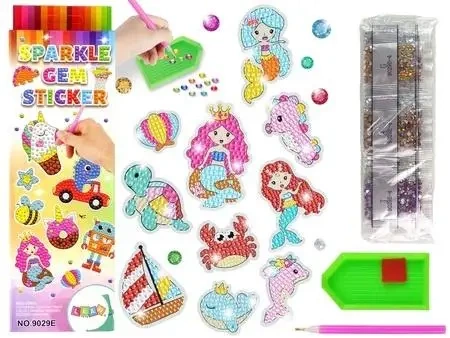W skład zestawu wchodzą kryształki w różnych kolorach, które posłużą do ozdabiania naklejek. Powierzchnia do wprowadzania kryształków pokryta jest specjalnym klejem. Poszczególne numery na powierzchni wskazują, jaki kolor należy zastosować. Układaj kryształki jeden po drugim i stwórz swoje małe arcydzieło.