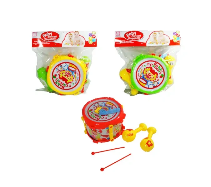 Różnokolorowe instrumenty muzyczne dla najmłodszych - zestaw składa się z grzechotek i bębenka z pałeczkami. Każdy produkt może posiadać różne warianty kolorystyczne, które są wybierane na chybił trafił. Ceny są podane za jedno nowe egzemplarze. Zabawka jest pakowana w przezroczysty, estetyczny worek. Wskaźniki podane w specyfikacji odzwierciedlają wielkość danego instrumentu. Idealne dla dzieci już od trzeciego miesiąca życia.EAN: 5902496140541