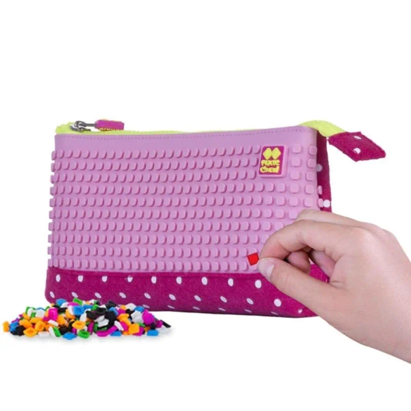 Piórnik Pixie Crew na zamek błyskawiczny jest duży i wielofunkcyjny. Wykonany jest z połączenia silikonu i filcu, co sprawia, że doskonale chroni jego zawartość przed wstrząsami czy uderzeniami. Charakteryzuje się białym wzorem w grochy oraz kreatywnym różowym panelem, umożliwiającym tworzenie spersonalizowanych grafik za pomocą w zestawie zawartych silikonowych pikseli. W jego wnętrzu znajduje się wystarczająco dużo miejsca, aby pomieścić nie tylko przybory szkolne, ale także inne drobne przedmioty, które chcemy mieć zawsze pod ręką. Dlatego piórnik Pixie Crew świetnie sprawdzi się również jako kosmetyczka czy praktyczna saszetka. Dodatkowy bonus: produkt sprzedawany jest z darmowym zestawem około 100 pikseli. Silikonowy panel został wykonany z najwyższej jakości materiału. Jego powierzchnia pokryta jest małymi wypustkami w kształcie litery "T", dzięki czemu można do nich przytwierdzać niewielkie płytki - silikonowe piksele oraz multipiksele z obrazkami, by tworzyć własne, unikalne grafiki lub korzystać z gotowych szablonów.Dodatkowe informacje o produkcie: