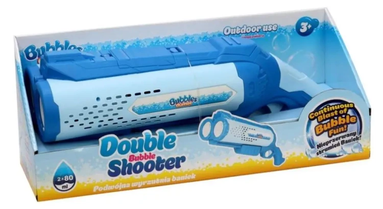 Rozwijaj zabawę na świeżym powietrzu do najwyższych poziomów z Dwufunkcyjną Strzelajką Baniek Mydlanych. To podwójna wyrzutnia, która zapewnia podwójną porcję zabawy, emitując mnóstwo pięknych, mydlanych baniek. Idealny prezent dla każdego małego miłośnika baniek mydlanych!