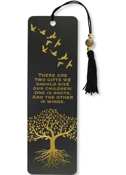 Przedstawiamy unikalną zakładkę do książki z serii Peter Pauper Press, o tematyce „Korzenie i skrzydła” (Roots and Wings). Ten piękny akcesorium do czytania ozdobione jest mądrą sentencją: „Są dwa prezenty, które powinniśmy dać naszym dzieciom: jeden to korzenie, a drugi to skrzydła”.