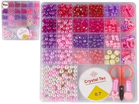 Uniwersalność tego zestawu jest olbrzymim atutem - posiada wszystko, co potrzebne do stworzenia odpowiadającej Ci biżuterii. Zestaw składa się z 25 różnych typów koralików w różnych odcieniach różu, w tym perły, spinki i różne zawieszki. Każdy koralik ma swoje miejsce w poręcznym organizatorze, pomagając utrzymaniu porządku. Dodatkowo, zestaw zawiera nożyczki i szpulkę z elastycznym sznurkiem, umożliwiając tworzenie pięknych naszyjników, bransoletek, czy pierścionków.