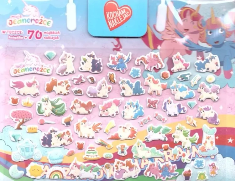 Zestaw "Moje jednorożce. Uwielbiam je naklejać!" jest czymś więcej niż tylko zestawem naklejek. To pół etui, pół książka, która zawiera ponad 70 naklejek z motywem jednorożców. Niezależnie od tego, czy uwielbiasz jednorożce, czy po prostu lubisz naklejki, ten zestaw na pewno Cię zadowoli.