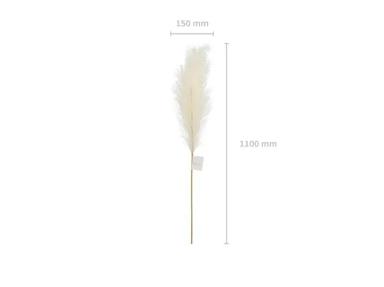 Ten egzemplarz sztucznej trawy pampasowej jest elegancki w swojej jasno śmietankowej barwie. Ma wymiary w przybliżeniu 15 x 110 cm, co sprawia, że idealnie wpasowuje się w różnego rodzaju dekoracje.