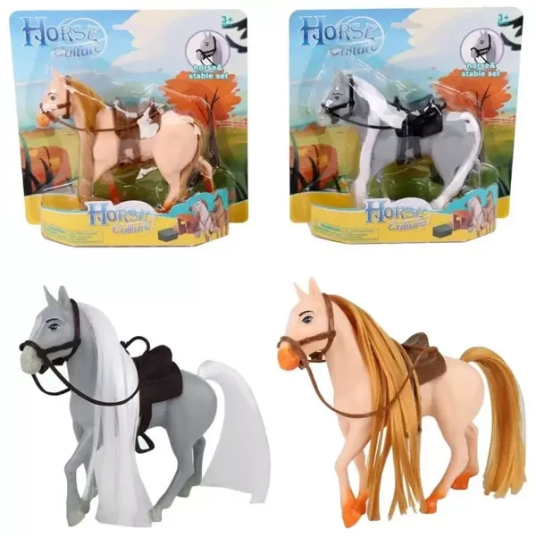 Zestaw zawiera figurkę konia z grzywą oraz ogonem, które mogą być czesane. Do kompletu dołączane jest również siodło oraz ogłowie.