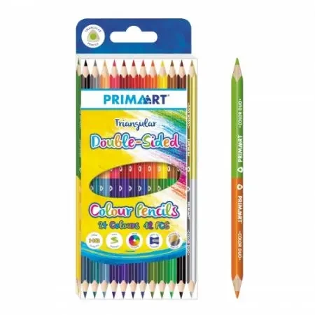 Produkt, który warto poznać: Dwustronne kredki ołówkowe, mające formę trójkątów, to uznane na rynku produkt marki PRIMA ART. Kredki te cechuje wysoka jakość oraz żywe barwy, które gwarantują łatwość rysowania, a także dokładne pokrycie powierzchni. Wyróżnia je trwałość - nie łamią się podczas temperowania.