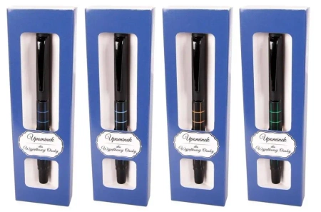 Markowe pióro wieczne DORIAN prezentuje się w czarnej odsłonie z kolorową kratą. Wyposażone jest w stalówkę irydową kompatybilną z typowymi naboikami atramentowymi. Co więcej, pióro zyskało eleganckie opakowanie - etui GB, co czyni go odpowiednim wyborem jako prezent.