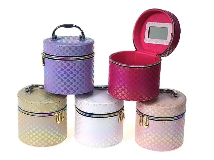 Kuferek rozmiaru S z wbudowanym lusterkiem i zamkiem, o wymiarach 14x14x13cm MIX