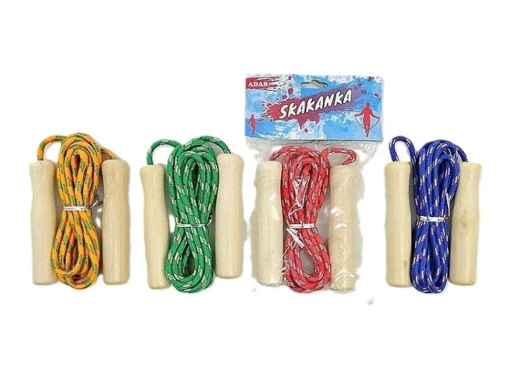 Nasza skakanka o długości 230 cm wyróżnia się spośród innych na rynku! Jej rączki są wykonane z drewna, co z pewnością wpływa na wygodę użytkowania. Sznurek jest trwały i odporny na wszelkie uszkodzenia, a ciekawy, dynamiczny mix wzorów z pewnością podoba się każdemu.