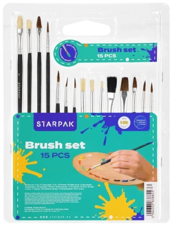 Zestaw pędzli STARPAK, składający się z 15 różnorodnych sztuk, jest produkt o wysokiej jakości, wykonany z naturalnego włosia. Stworzony, aby sprostać oczekiwaniom i potrzebom młodych, mających aspiracje artystyczne osób.Różnorodność dla różnorodnych efektów