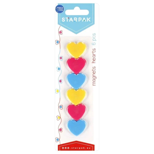 Zestaw mocnych kolorowych magnesów w plastikowej obudowie w kształcie serca od STRAPAKA. Przydatne w biurze, domu oraz pracy. Zapoznaj się również z innymi produktami Starpak dla biura, domu. Magnesy pakowane na blistrze po 6 szt. Wykonane z plastiku.Występują w trzech kolorach: niebieskim, żółtym, różowym.