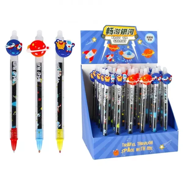 Specjalnie dla Ciebie STARPAK stworzyło długopisy, które pozwolą na natychmiastowe naprawienie popełnionych błędów czy pomyłek. Niewielkim wysiłkiem, za pomocą transparentnej końcówki długopisu, możemy dynamicznie potrzeć tekst, a tusz zniknie niczym za dotknięciem magicznego zaklęcia. Długopisy STARPAK dostępne są w trzech różnych wariantach, a każdy z nich posiada unikalny gumowy wyłącznik ozdobiony kosmicznym motywem.Idealny długopis do szkoły, biura i domu
