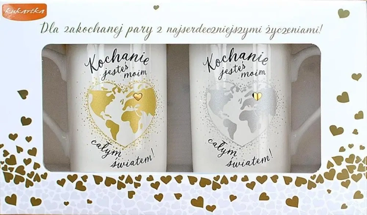 Rodzaj produktu: zestaw kubków na prezent, Materiał: porcelana, Pojemność: 2 x 275 ml, Okazja: ślub,rocznica ślubu Opakowanie: ozdobne pudełko.